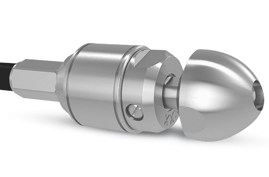 The KEG ½″ rotor nozzle uses 45° jets for efficient and thorough sewer cleaning.